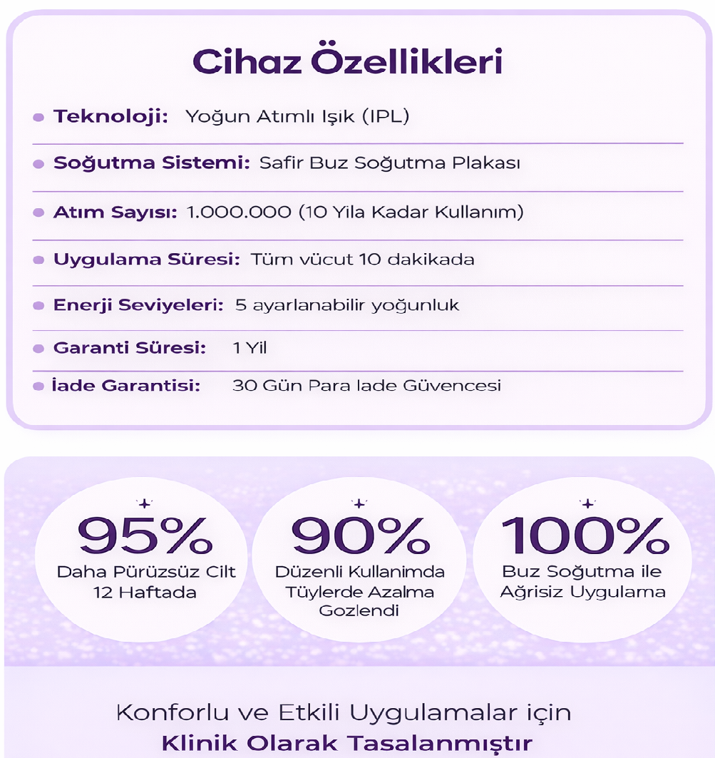 Evet, IPL teknolojisi klinik olarak test edilmiş ve evde kullanım için güvenlidir. Ancak, daha koyu ten tonlarına (Fitzpatrick V–VI), çok açık veya kızıl saçlara sahip kişiler veya hamile, emziren veya epilepsi hastası olan kişiler için uygun değildir. İlk tam seansınızdan önce mutlaka bir yama testi yapın.